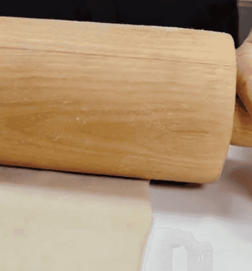 Roll the dough thinly on a floured surface. Cut the dough into two equal halves.
