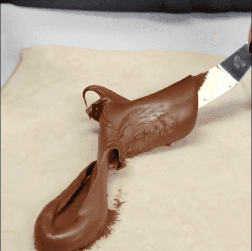 Spread the chocolate paste on one half.
