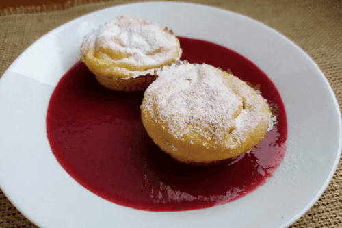 Ricotta cheesecakes with raspberry sauce