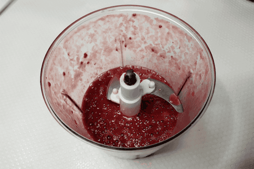 Whip the raspberry sauce in a blender.