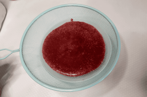 Strain the sauce through a sieve to separate the raspberry seeds.