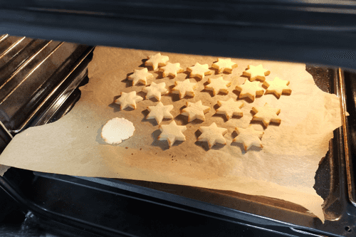 Shape the future cookies and send them to a preheated oven at 180 degrees.