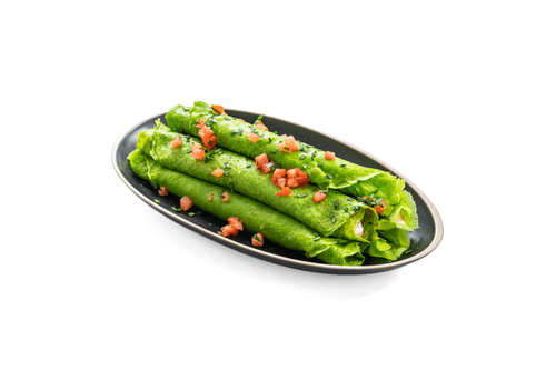 Serve green pancakes warm or chilled, garnished with fresh herbs.