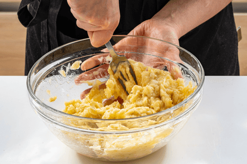 Mash the bananas with a fork.
