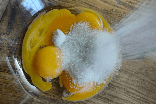 Add sugar to the yolks.