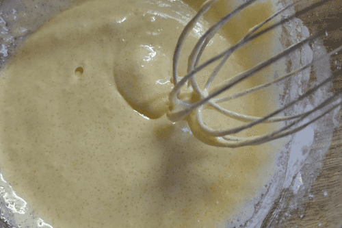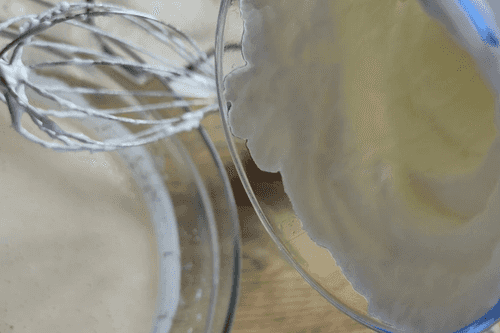 Mix carefully until the sugar dissolves and the mixture lightens.
