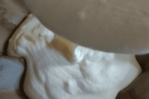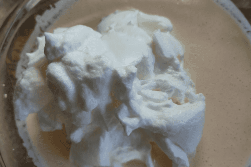 Next, place the foam into the container with the yogurt mixture.
