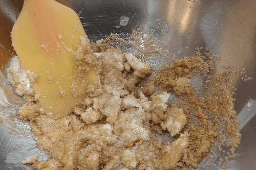 In a deep bowl, combine butter, vanilla, and brown sugar.