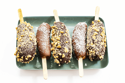 Skewer each banana on a stick or popsicle stick. Let the bananas sit in the freezer while the chocolate melts.