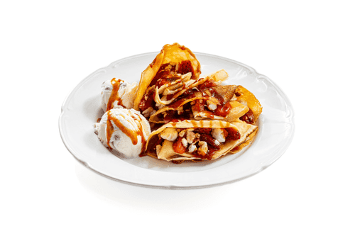 Cheese-filled pancakes with berries are a true celebration of flavor, combining delicate traditional Russian pancakes with airy cheese filling and sweet strawberry caramel. This recipe traces back to ancient Russian traditions when pancakes were served with various fillings on special days like Maslenitsa. Their golden crust hides an amazing blend of textures: the softness of the cheese, the juiciness of the berries, and the sweetness of the caramel. They can be served with a scoop of ice cream for a refreshing contrast. The dish is perfect for a cozy family breakfast or an exquisite festive treat, bringing warmth from home cooking and joy to the palate.