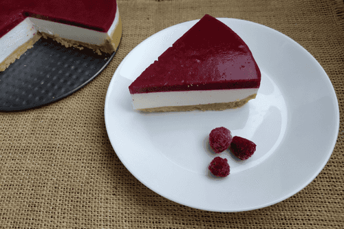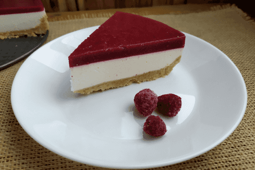 Pour a layer of raspberry puree over the set cottage cheese mass. Place in the refrigerator to set.