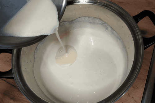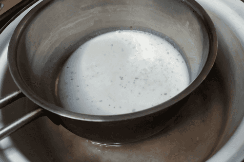 Soak 30 grams of gelatin in 100 ml of milk in a saucepan for 15 minutes to swell. Then heat it in a water bath for 10 minutes.