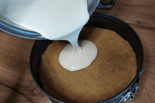 Crush the cookies into crumbs, mix with melted butter. Press the mixture into the bottom of the mold to form a base for the future cheesecake.