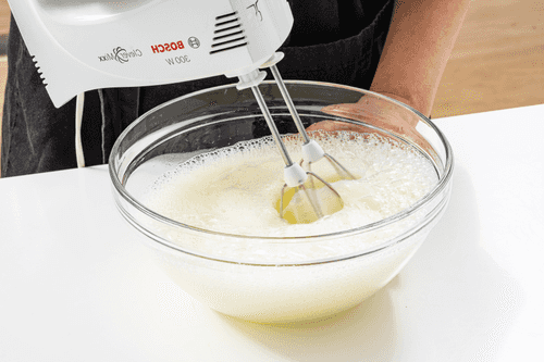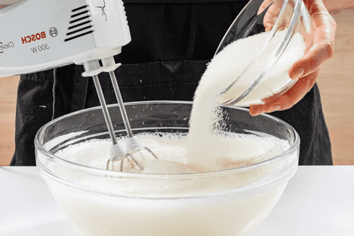 Whisk the yolks in a separate bowl with the remaining sugar until pale.