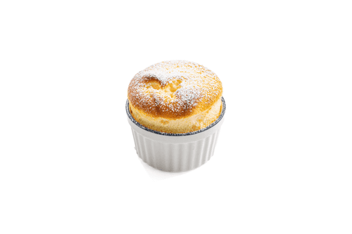 Bake in a preheated oven at 190 degrees for 15-20 minutes, until the soufflé rises and is covered with a golden crust. Remove from the oven, sprinkle with powdered sugar, and serve immediately.