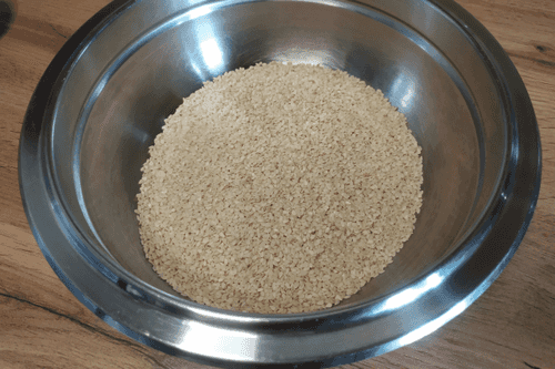 Pour 100 grams of sesame into a bowl.