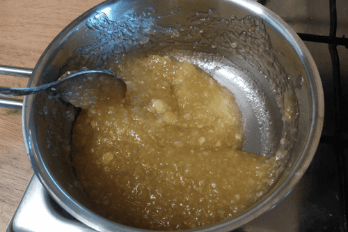 Put on the heat and simmer the lemon filling until thickened for 5-7 minutes.
