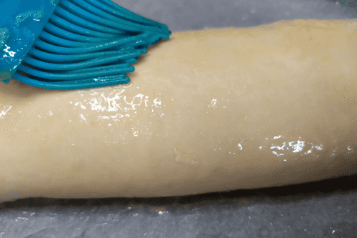 Roll the dough and brush with beaten egg.