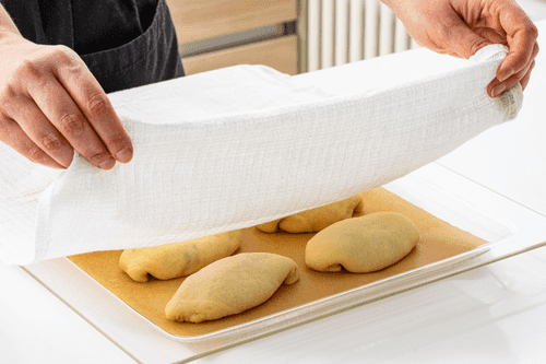 Place the pastries on the baking sheet seam side down, cover with a towel, and let rise for 15 minutes.