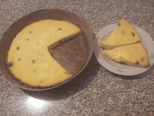 When serving, cut into portions and drizzle with sour cream or sweet sauce.