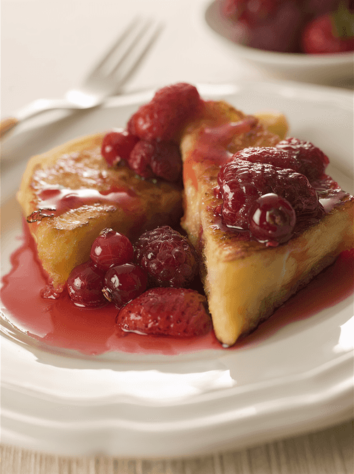 Cut the crusts off the bread and place them in 6 small pudding molds. Cut 1 piece for the bottom of the mold and line the edges with strips. Pour a small amount of berry juice into a bowl and gently moisten one side of the bread before placing it. Place it with the wet side down.