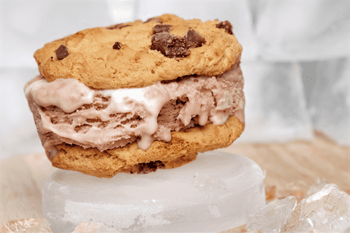 Lay biscuits at the bottom of the mold, preferably crosswise for easier cutting later, then add ice cream and smooth it out. Place the remaining biscuits on top, cover everything with film, and put it in the freezer for 2 hours.