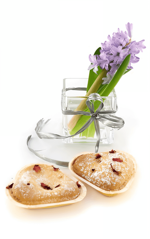 Heart-shaped buns with dried cherries and chocolate chips are a refined blend of flavors that add delicate charm to traditional British baking. Their origin traces back to home tea treats in England, where sweet, airy scones adorn every tea gathering. Dried cherries give them a soft tartness that harmonizes with the sweetness of the chocolate chips. A light citrus note from orange zest enhances the aroma, while buttery dough makes the buns crumbly and tender. Perfect for a cozy breakfast or romantic treat. Served warm, slightly crispy on the outside and soft inside, they are especially delicious with a cup of fragrant tea or coffee.