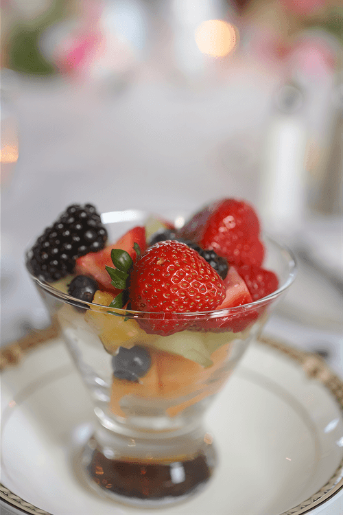 Fruit and berry salad with mint is the embodiment of freshness and lightness, an ideal choice for a summer day. This vibrant mix of strawberries, blackberries, pineapple, and green apples creates a harmonious blend of sweetness and slight tartness, while fresh mint adds a special refreshing note. Such fruit salads were popular in European cuisine during the Renaissance when fruits were paired with herbs for a more refined taste. It can be served as a dessert, a light snack, or even as a decoration for the festive table. The ease of preparation makes it accessible to everyone, while natural ingredients provide energy and vitality. Serving it in compotes adds aesthetic sophistication, turning a simple salad into a true culinary masterpiece.