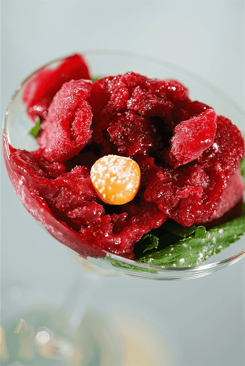 Raspberry granita is a refreshing dessert from Italian cuisine that embodies summer lightness and fruity freshness. This cold drink originated in Sicily and became a symbol of sunny days, served in morning cafes and on terraces overlooking the sea. Granita is distinguished by its texture: it is not as dense as sorbet and not as liquid as ice cream, resembling icy crystals with a rich raspberry flavor. Its sweet-and-sour hue enriched with lemon juice makes granita an ideal addition to summer evenings. Served in glasses adorned with fresh berries, it not only refreshes but also delights the eye with its bright color. It pairs excellently with light desserts or can be enjoyed on its own, offering moments of coolness and pleasure.