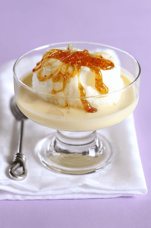 Meringue with delicate cream and caramel is an exquisite dessert from France, embodying the airy lightness and sophistication of classic European cuisine. Tender clouds of whipped egg whites gain softness in a milky-cream bath, while vanilla cream adds a silky texture and rich aroma. Fragile golden caramel threads adorn the dish, providing a delightful contrast of flavors—the sweetness of meringue, the velvetiness of cream, and deep caramel richness. This dessert is fit for royal receptions, yet its elegance is accessible to anyone wishing to enjoy true culinary art. Perfect for festive occasions or a cozy evening with a cup of fragrant tea.