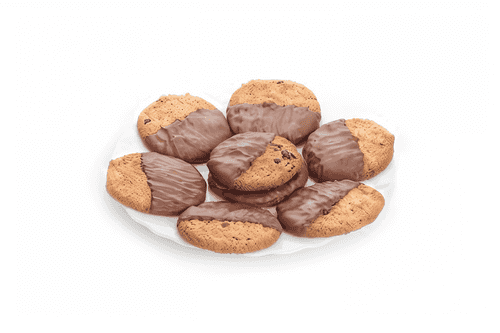 Melt the chocolate in a hot water bath, then slightly cool it and dip the ends of the bars in it one by one. Cool down.