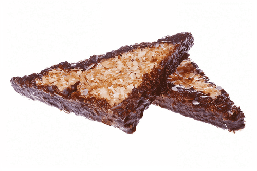Bake in the oven for 15 - 20 minutes. After cooling, cut the baked layer into squares with a side of 5 cm, then cut diagonally to make triangles. Dip the sharp corners of these triangles in melted chocolate.