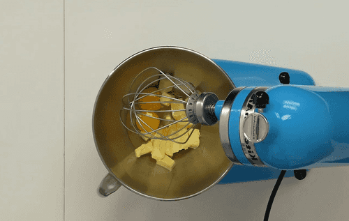 Beat room temperature butter with eggs. Add condensed milk and mix.