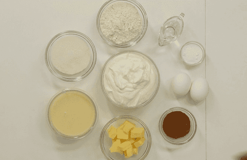 Preheat the oven to 180 degrees. Grease the molds with oil, bake 2 layers until done (about 20 minutes).