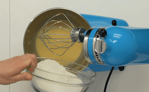 Prepare cream for the cake: lightly whip sour cream with sugar.