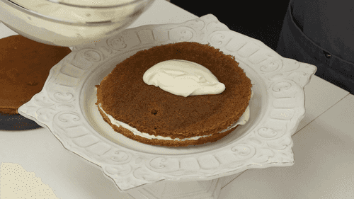 Spread cream on all layers and arrange them as a cake. Coat the sides of the cake with cream as well.