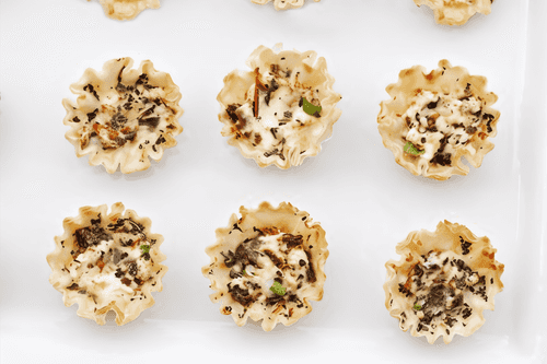 Fill the baskets with omelet and place them in the oven. Bake until golden brown.