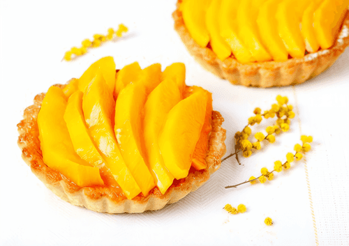 Place the prepared cream in the baked baskets and decorate with slices of mango and papaya.