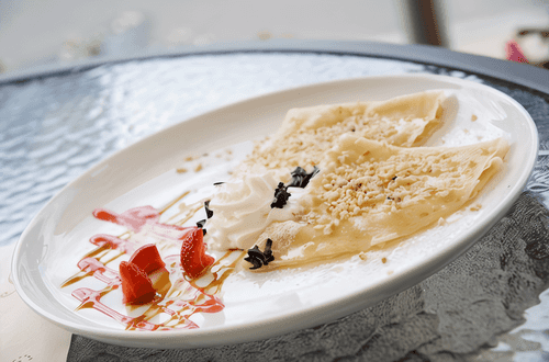 Crispy tortillas with berry sauce are a refined dessert that combines the crunchy texture of baked flatbreads with the refreshing taste of strawberry sauce infused with orange notes. Brazilian cuisine is known for its vibrant and rich flavors, and this recipe is a great testament to that. The slightly caramelized crispy tortillas pair wonderfully with delicate vanilla yogurt and aromatic coconut flakes, creating a harmony of sweetness and freshness. This dish is perfect as a light dessert or an unusual snack for a festive table. Its simplicity in preparation makes it accessible even for culinary beginners, while its exquisite taste and appealing appearance are worthy of gourmet attention.