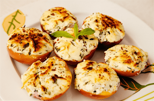 Then place them cut side up on a heat-resistant dish or baking tray.