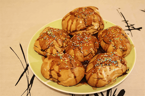 Bake the éclairs for the first 15-20 minutes at 200 degrees (the éclairs should double in size and brown). Then reduce the temperature to 150 degrees and dry the pastries for another 10-15 minutes.