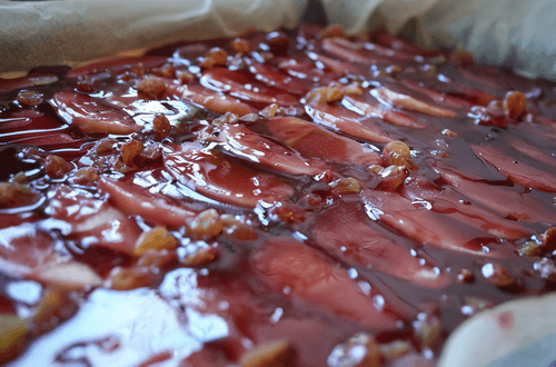 Line a deep baking tray with paper. Spread the nut dough evenly.