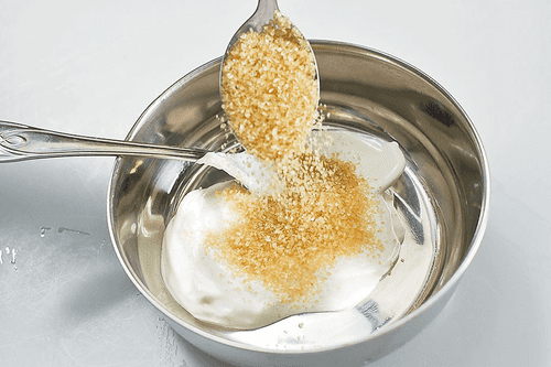 In a bowl, whip the sour cream with sugar. The amount of sugar, its type, and the fat content of the sour cream should be adjusted to taste. Dark cane sugar, for example, will give the mixture a light caramel flavor, and the thicker the sour cream, the airier the cream will be.