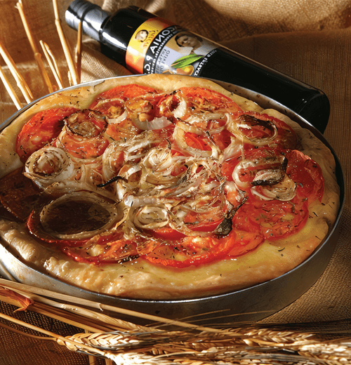 Ladenia is a traditional Greek pie that traces back to the deep rural cuisine of the Mediterranean. This dish embodies the simplicity and flavor of sunny Greece: airy dough infused with olive oil aroma, sweet tomatoes, and tender caramelized onions create a harmony of tastes. Capers add a tangy note, giving the pie a slight acidity. Ladenia is perfect as an appetizer, a standalone dish, or an accompaniment to traditional Greek treats. It can be served warm or cold, enjoying the richness of textures and the intense Mediterranean aroma. This pie evokes warm Greek evenings, homely comfort, and leisurely meals by the Aegean Sea.