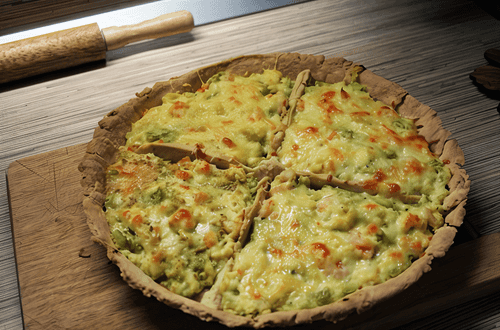 Quiche with royal shrimp and zucchini is an exquisite dish of French cuisine that combines the tenderness of seafood and the freshness of vegetables in harmony with a light pastry base. This quiche resembles traditional French pies originally made in the Lorraine region. The crispy base soaked in butter highlights the creamy texture of the filling made from zucchini, shrimp, and cheese. Mozzarella adds softness while basil pesto brings spicy notes. The dish is light yet nutritious, perfect for both an elegant dinner and a cozy family lunch. The flavor of the quiche unfolds gradually: first, you taste the salty tenderness of the shrimp, then the slight sweetness of zucchini, and finally the richness of cheese. It is best served slightly warm to harmonize textures and aromas.