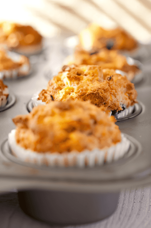 Combine both mixtures and add almond, grated carrot, coconut flakes, and almond extract. Mix well.