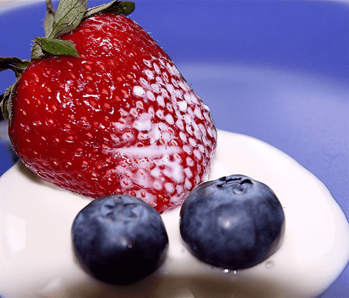 Blueberries and strawberries with lemon sauce