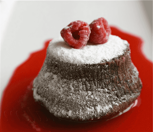 The mold should be placed in cold water for a couple of minutes. This is necessary for the tortino to easily separate from the mold. The dessert should remain hot so that the chocolate inside doesn't thicken. Pour the tortino with vanilla sauce. Berries and powdered sugar can be used for decoration.