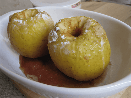 Sprinkle the prepared apples with powdered sugar. Serve hot.