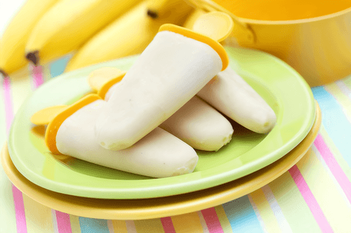 Pour the banana mixture into molds, insert sticks, and freeze.
